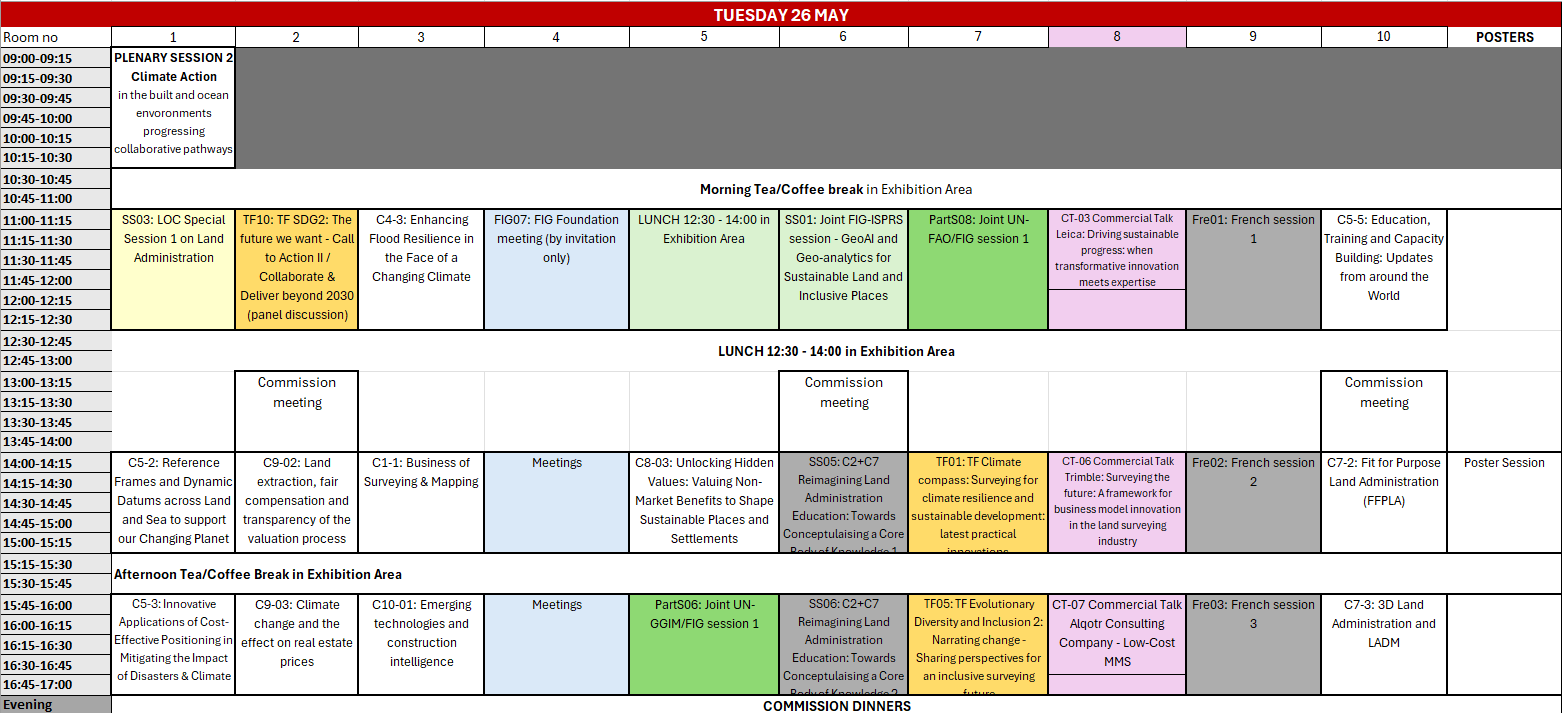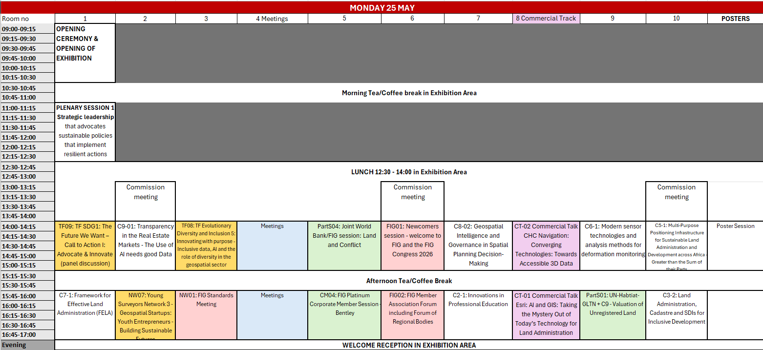 | Evenings | Welcome Reception | FIG Commission Dinners | Gala Dinner | |||||