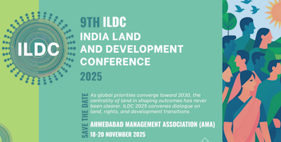 18-20 November 2025, Ahmedabad, India 9th India Land Development Conference (ILDC) 2025. Theme: “Centrality of Land and Sustainable Development: Addressing the Past, the Present and the Future". |