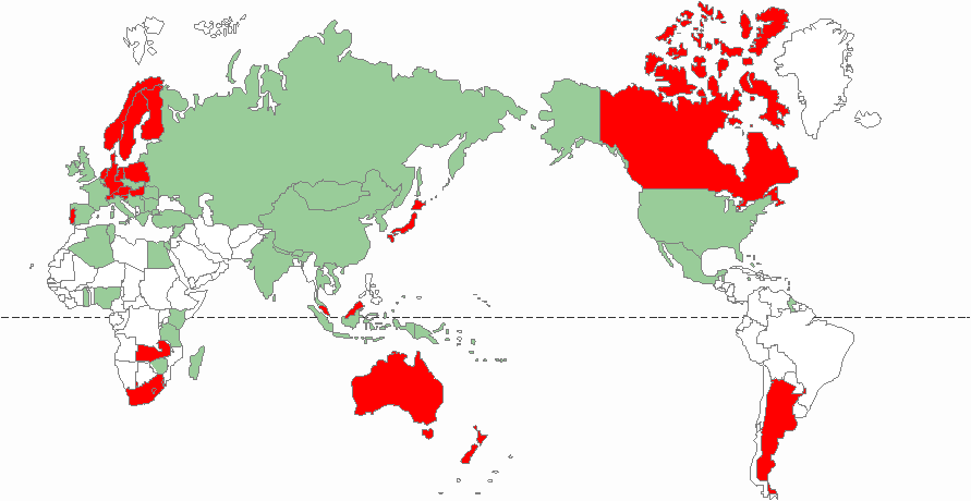 Australia (7), Finland (2), Japan (2), The Netherlands (2), New Zealand (2),
